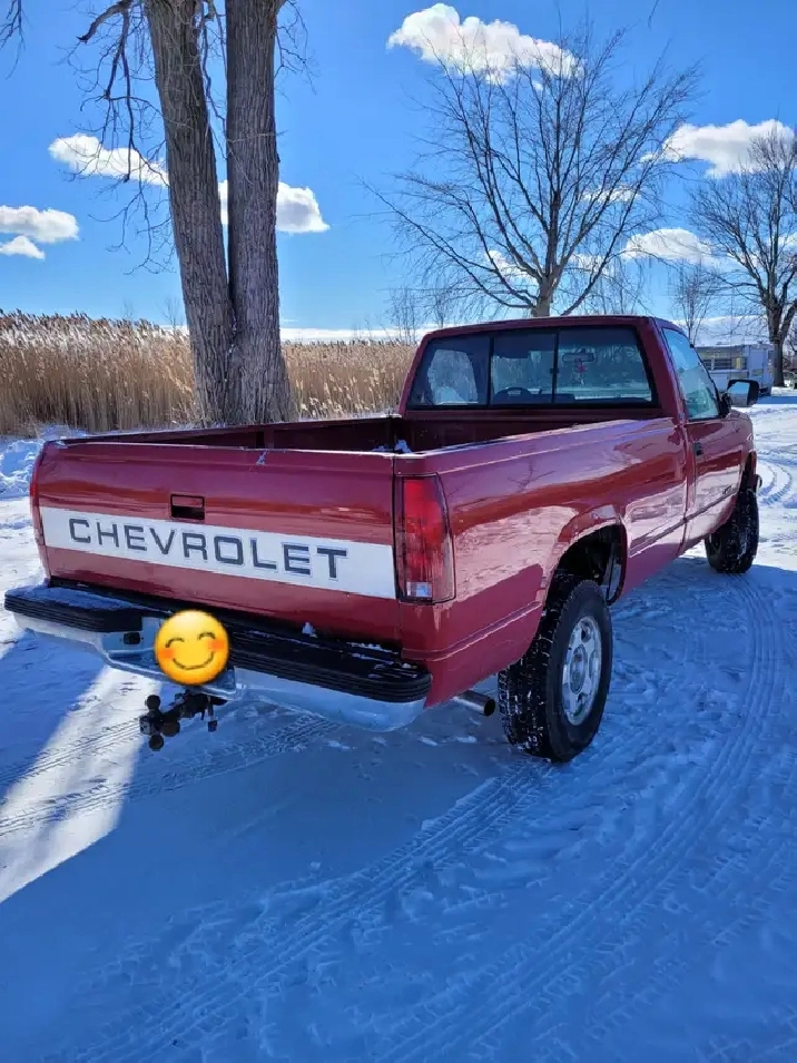 Single Cab 1988 Chevy Cheyenne Long Box 4x4 Crate Engine Approx 50,000 kms. Posi Rear End replaced 2 years ago and works great Extra Posi Rear End goes with it. Premium parts put on in the last 2 years. Drums, Discs & Pads, Front & Rear Universals, Front End control arms, upper & lower ball joints. New Exhaust.. Could use some body work on box mainly, on cab minimal. Not much to safety.