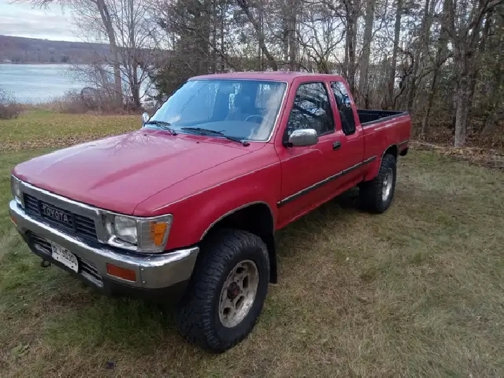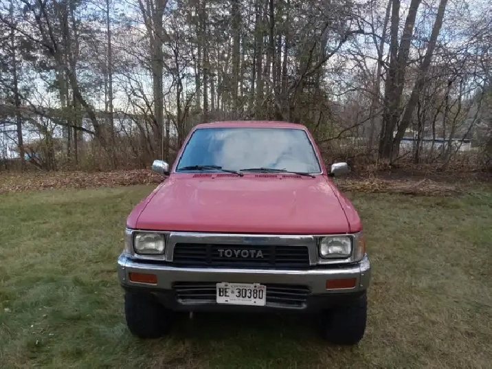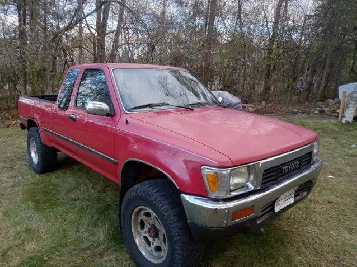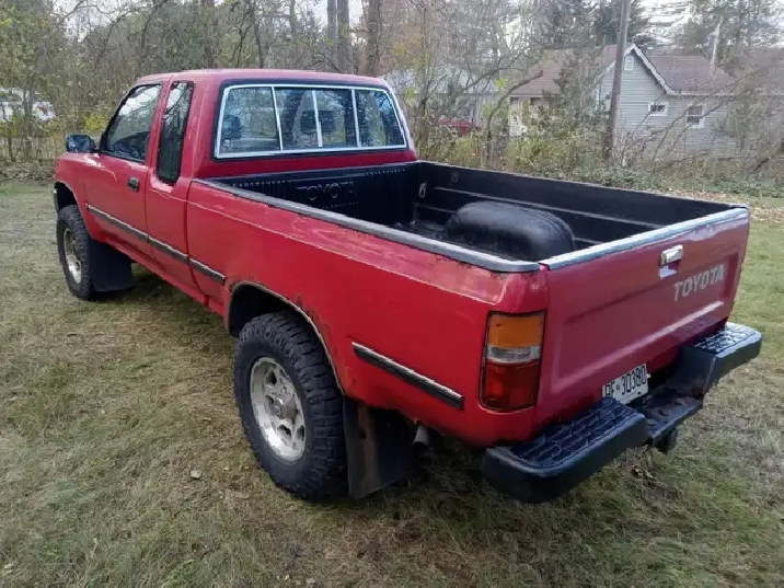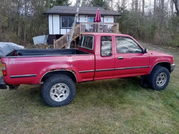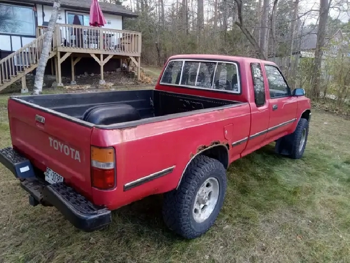 1990 Toyota Pickup for sale. 5spd. 4cy. 22re. Truck is from Vancouver Island and has been in Ontario for 4 years. Clean frame and cab. Bed and rear bumper are pretty rusty. 446000km. I work as a gardener and this has been my work truck for the past 4 years. Best truck I've ever owned! Truck still runs surprisingly well but needs front brakes. Clutch works but should be looked at. Some interior peices need fixing, Stopped driving it last week (Nov 15). Would be an excellent candidate to fix for someone with the ability. $2500. Located in Frankford. Mark (905) 924-3922.