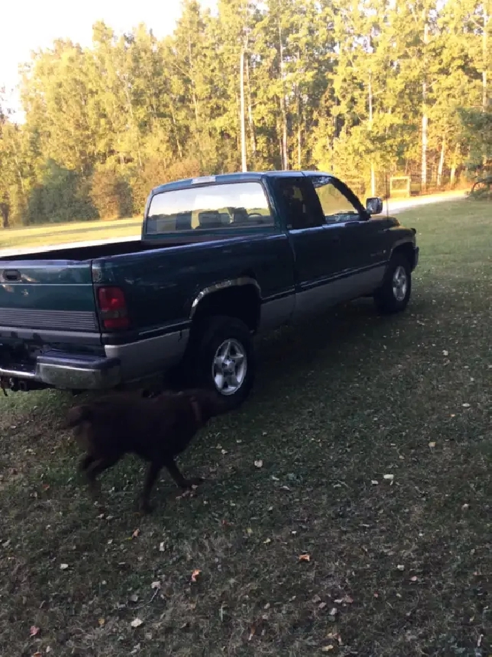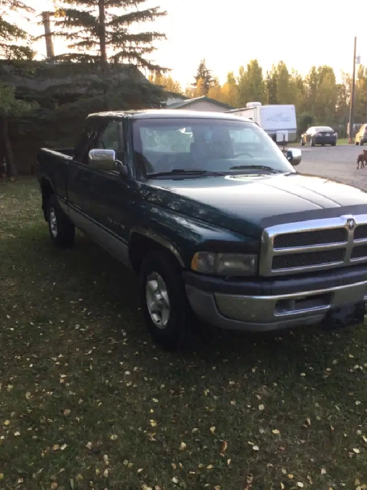 1997 Dodge Ext. Cab, Senior owned( can no longer drive) just spent $1700 on service work. 318 ci., runs well, no leaks or burning. Has typically rust of a truck this age. Box bed in good shape, sprayed with Line X. Comes with a tool box. $2900.00 OBO 403-895-9993