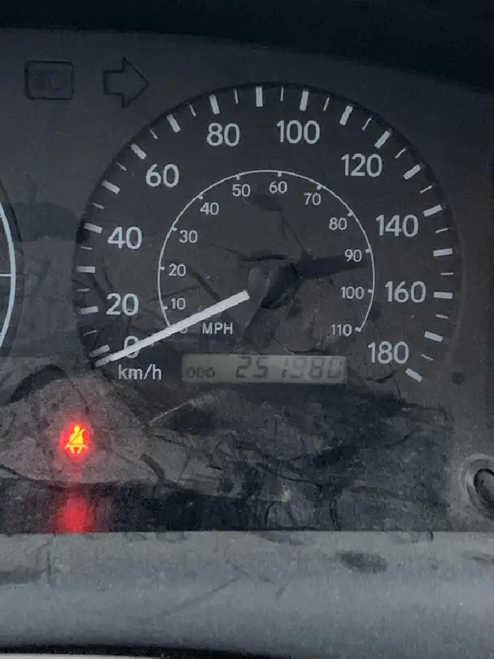 250,000 km, a few dents and scratches, with a check transmission light on. I keep some extra engine oil in the trunk because it burns oil and needs a change or top-up every couple of months.