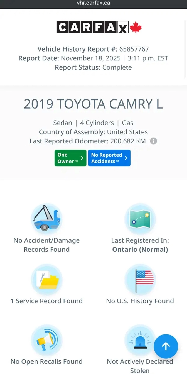 Rapport Carfax: impeccable, un seul propriétaire.