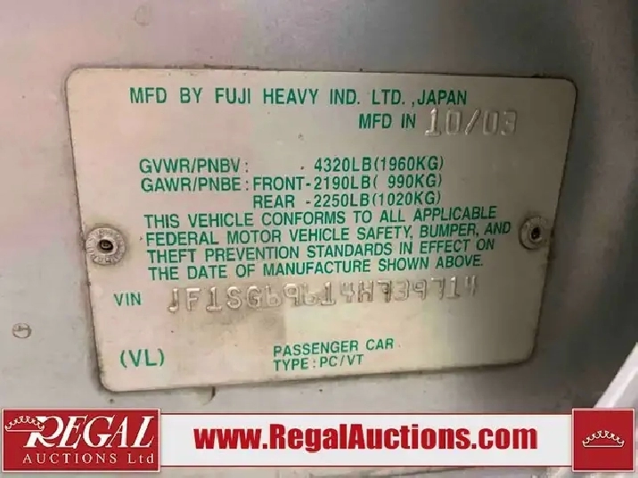 LiveBlock Online Bidding: This vehicle will be available for bidding over the internet. Visit www.RegalAuctions.com to register to bid online.