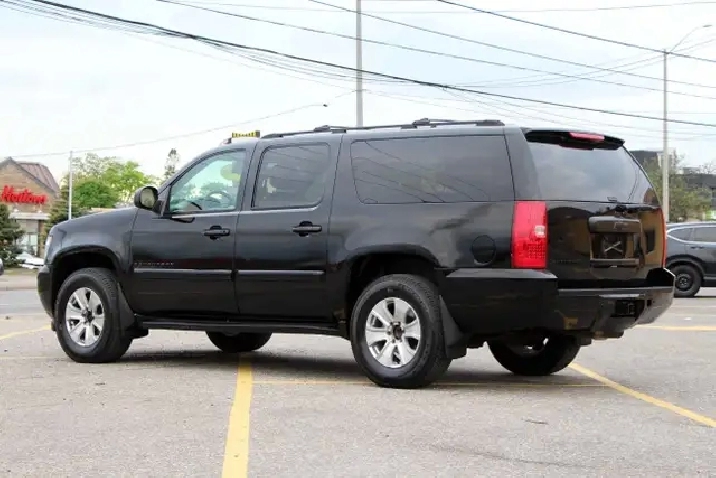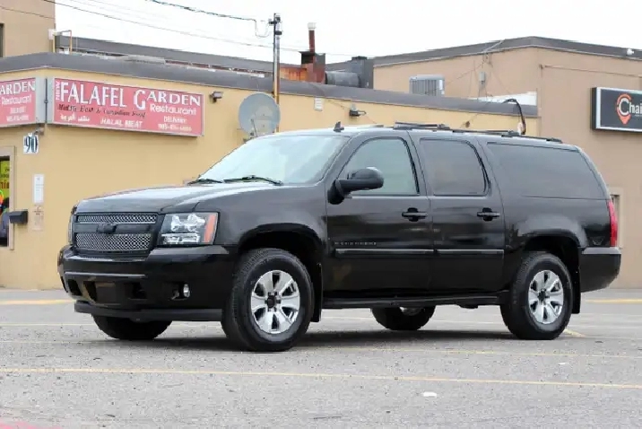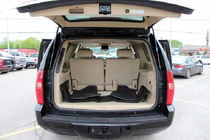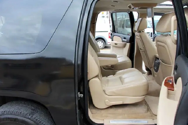 2007 Chevrolet Suburban 1500 4x4 LT 7-Passenger with 277,695 original kilometers. 5.3L 8-Cylinder. Black on beautiful Beige interior with wooden trim. Loaded with 2nd row heated Capitan seats, Power tailgate, Sunroof, Park assist, Power folding rear seats, Adjustable pedals, Power driver/passenger seats with lumbar, Roof rack, Fog lights, and some nice rims. Interior in great condition. Runs and drives strong. Certified with our 2 year power train warranty.