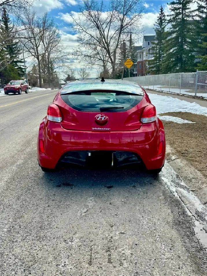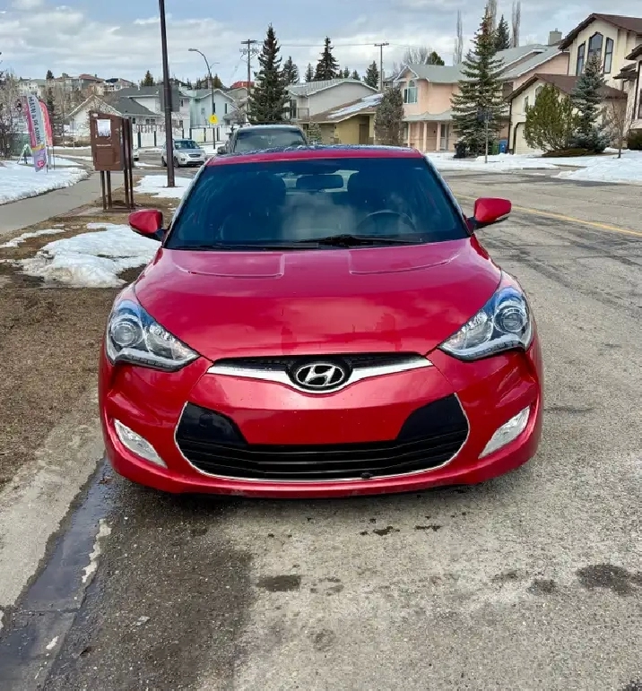 Great condition 2016 Hyundai Veloster Tech with low mileage (110,806 km). It has never been in an accident, only minor dings. This car has had only one owner and is currently registered in Alberta. It comes with two sets of tires on rims: a set of winter tires and a second set of summer tires that are paint-matched to the vehicle.