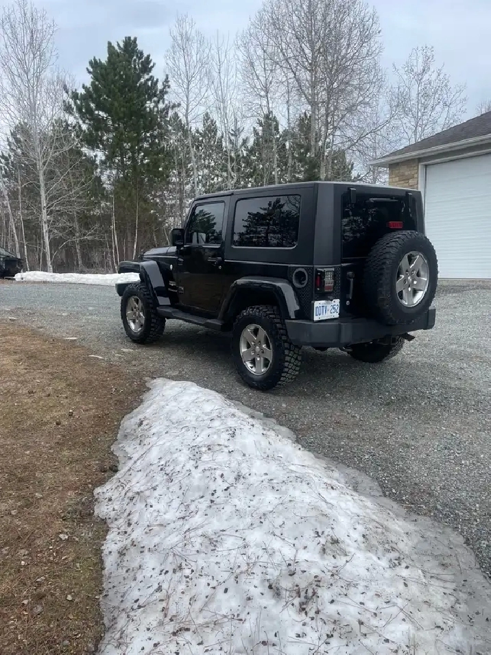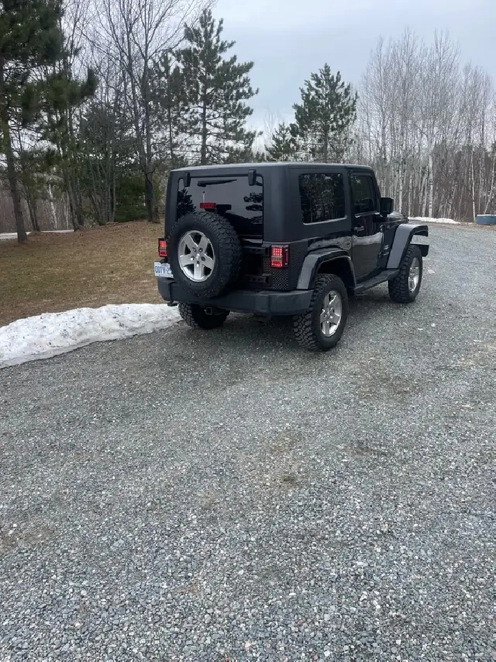 I'm selling my 2010 Jeep Wrangler Sahara, a rugged and reliable SUV with a 3.8L V6 engine, four-wheel drive. Only 120000 kms with grey leather interior, tinted windows, all LED lights, light bar, BF Goodrich tires. Comes with hard top and soft top. New windshield and battery, very good condition. Call or text (705)662-3098 $13,800