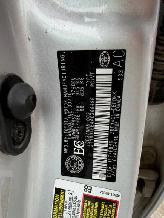 Vin #:2T1BU4EE4AC368486