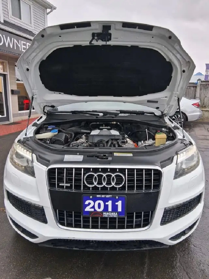2011 Audi Q7 3.0 S Line Prestige QuattroEngine & Performance:Engine: 3.0-liter V6 supercharged TFSIHorsepower: 300 hp @ 6,300 rpmTorque: 325 lb-ft @ 3,500 rpmTransmission: 6-speed automatic with manual shift modeDrive System: Quattro all-wheel drive (AWD)0-60 mph: Approximately 6.4 secondsFuel Economy (EPA est.):City: ~13-14 mpgHighway: ~19-20 mpgExterior & Interior:Special Features (S Line Package):Sportier front and rear bumpers20-inch S Line alloy wheelsS Line badging and styling accentsInterior:Premium leather upholstery (likely available in multiple colors)S Line sport seats with additional bolsteringWood or aluminum interior accentsPower sunroofTechnology & Comfort:Infotainment System:Audi MMI navigation plus system with a color displayPremium audio system (Bang & Olufsen or Bose upgrade available)Climate Control:3-zone automatic climate controlSeating:Seating for 7 with fold-flat second and third-row seatsOther Features:Power liftgateKeyless entry and push-button startHeated front seatsPower-adjustable front seats with memoryPower-folding and heated mirrorsSafety & Security:Anti-lock braking system (ABS)Electronic stability control (ESC)Traction control systemMultiple airbags: front, side, curtainParking sensors (rear)Dual exhaust systemTire pressure monitoring system (TPMS)......