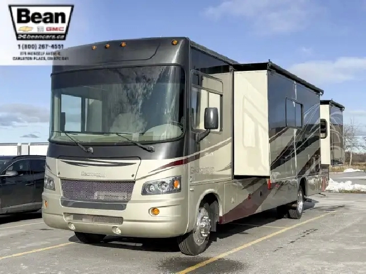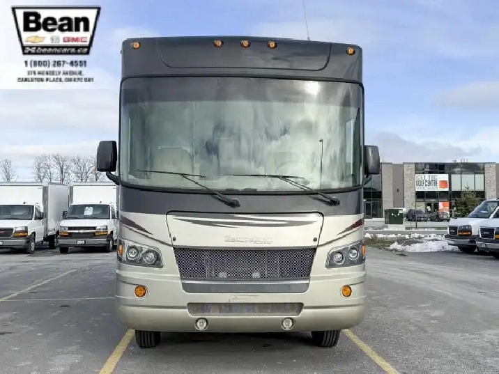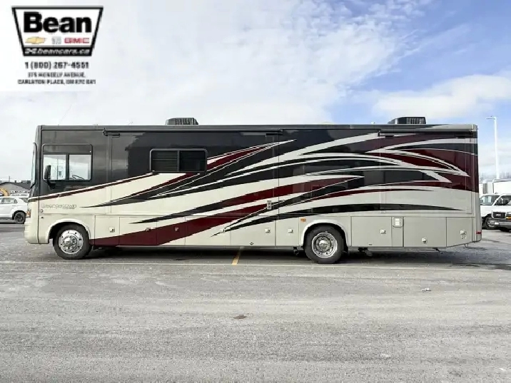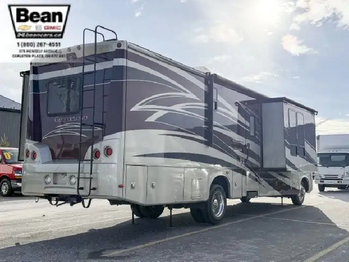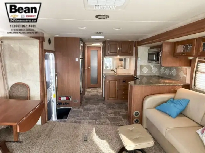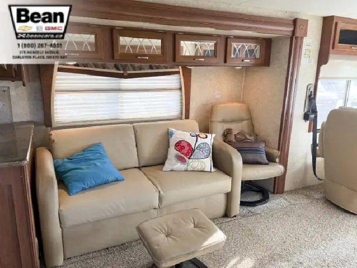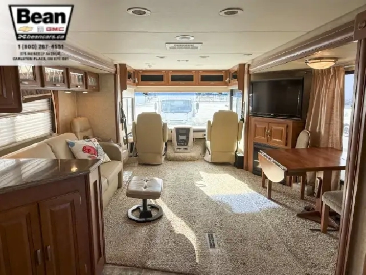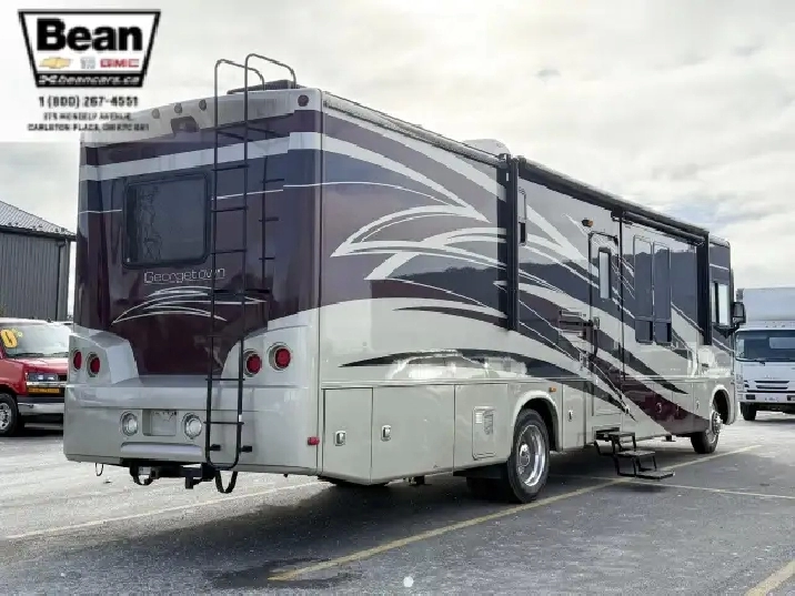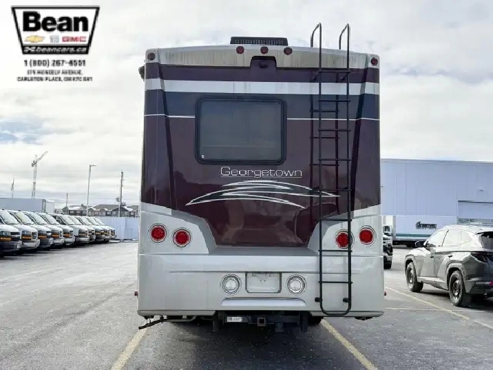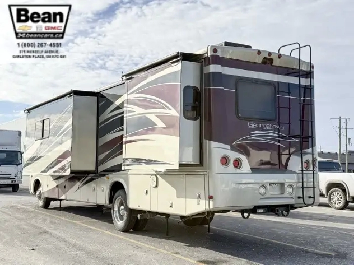Step inside this roomy and welcoming Georgetown and youll immediately feel like youve found a home on wheels. The salon opens up with three power slide-outs, creating a spacious living area anchored by a free-standing dinette, a hide-a-bed sofa, and a euro recliner. Cozy up by the fireplace on cooler evenings while you enjoy the 40 LCD/HD TV, or let the abundant natural light stream in through the generous windows.