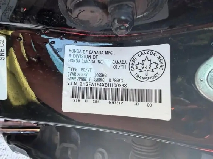Vin #:2HGFA1F4XBH100338