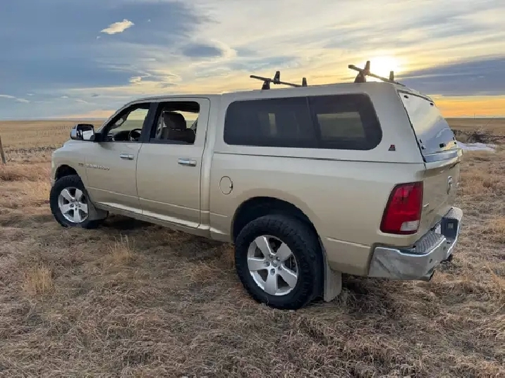 2011 Ram 1500 Laramie. It has 225,605 km and comes with a premium Leer topper, new battery, and has a spray in box liner.