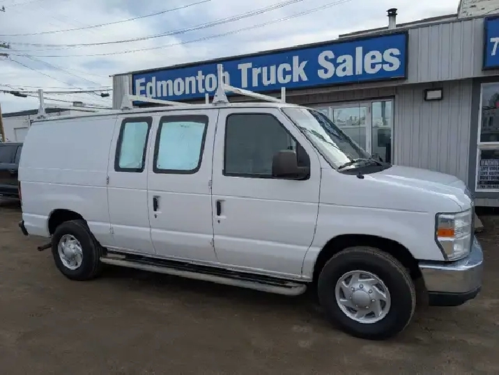 2012 FORD E-250 XLT CARGO VAN, 4.6L TRITON V8, AUTOMATIC, POWER WINDOWS AND LOCKS, AIR CONDITIONING, TILT STEERING AND CRUUSE CONTROL, REAR DIVDER AND SELVES, ROOF RACK, NEW TIRES, VERY WELL MAINTAINED, AMVIC SAFTEY INSPECTED.