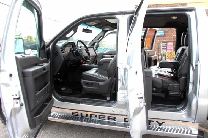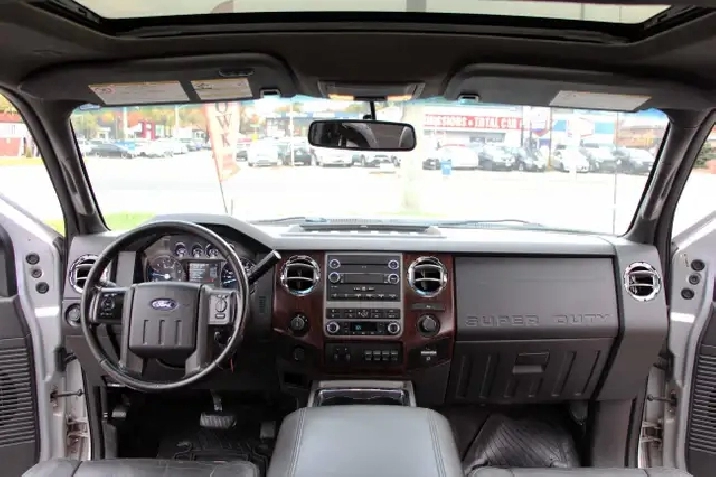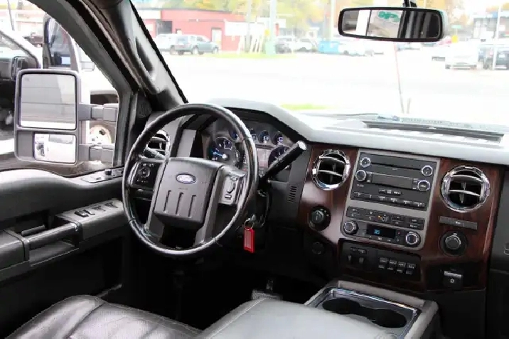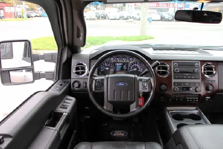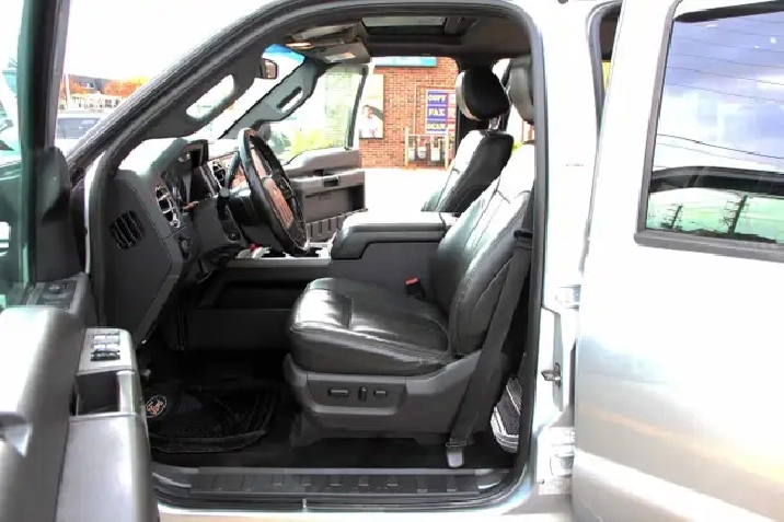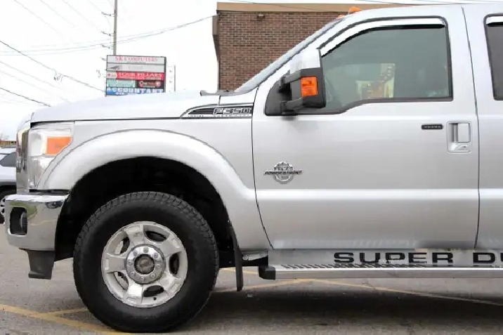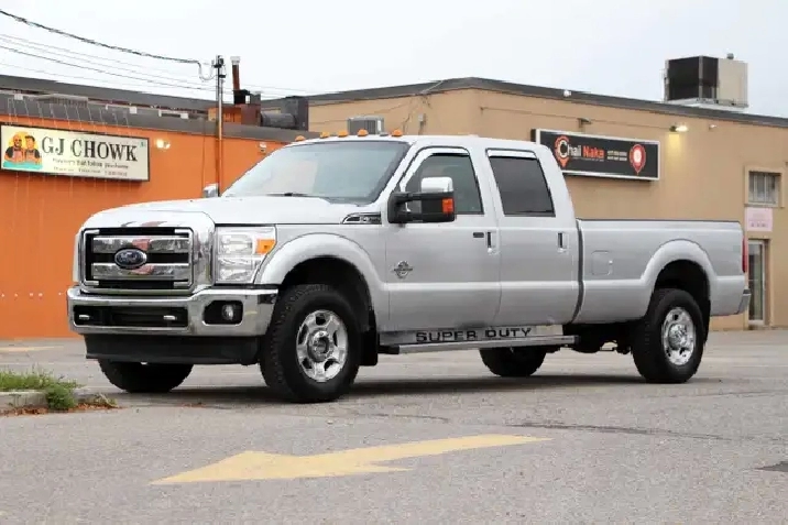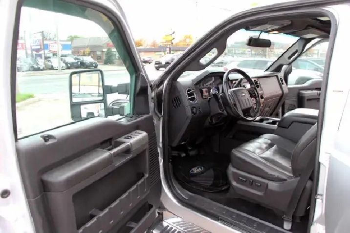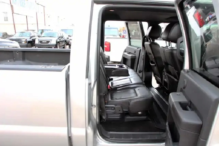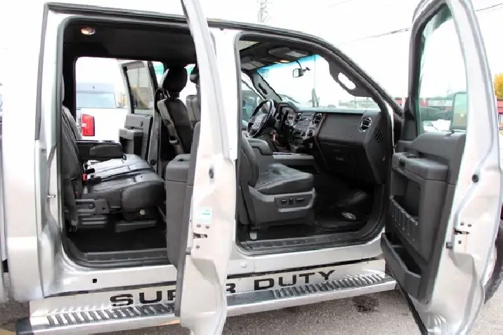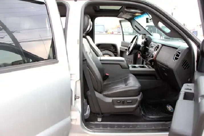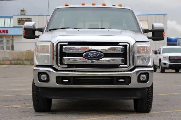 2012 Ford F-350 Lariat Crew Cab 8FT BED 4x4 6.7L Power stroke Diesel with 241,629 Original kilometers. Beautiful Silver and Chrome exterior with Black and wooden trim interior. Certified and backed by our 2 year power train warranty. Loaded with Heated/Cooled seats, Memory Seats, Power seats, Leather, Sunroof, heated mirrors, Center console, steering wheel controls,