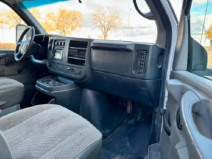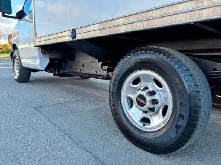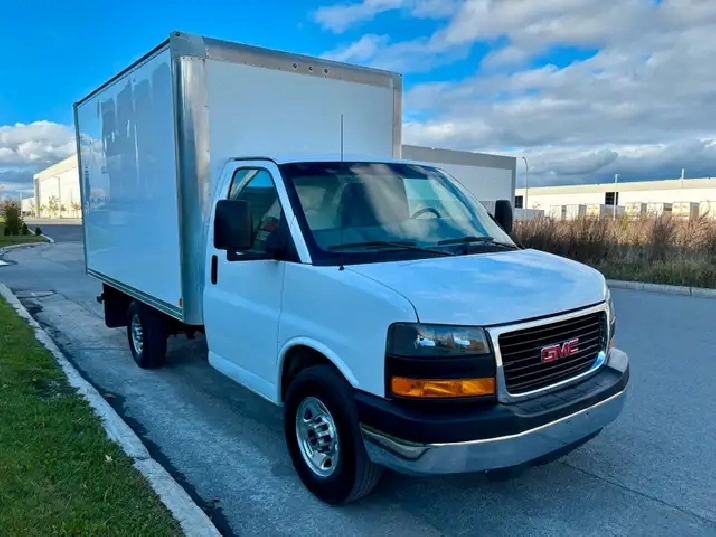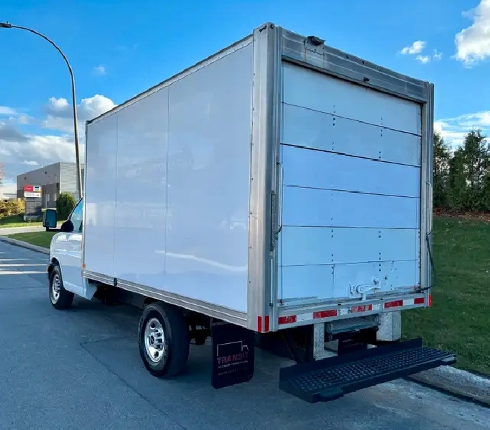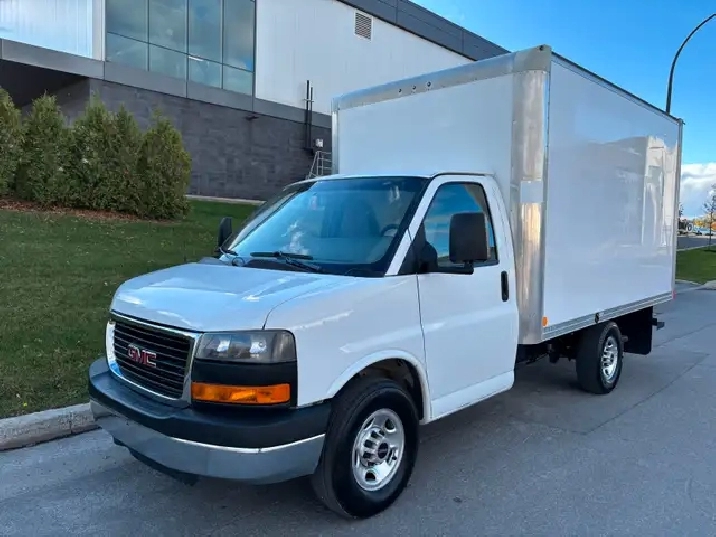 2012 GMC Savana 3500 Simple Roue Camion Cube avec Boîte de 12 Pieds, en très bonne condition toujours bien entretenu, carrosserie propre, roule super bien mécanique en bon état moteur 4.8L V8, boîte de 12’ spacieuse et pratique avec rampe de chargement intérieur propre. Camion avec roue simple en arrière, donc pas besoin d’inspection à chaque année, ni d’arrêter aux balances.