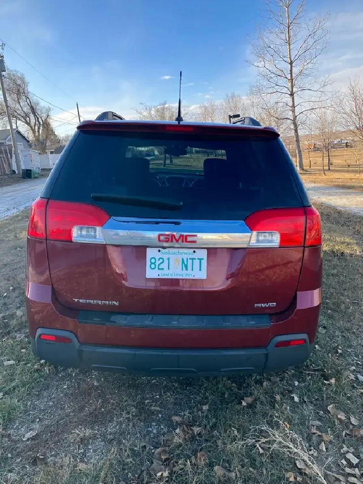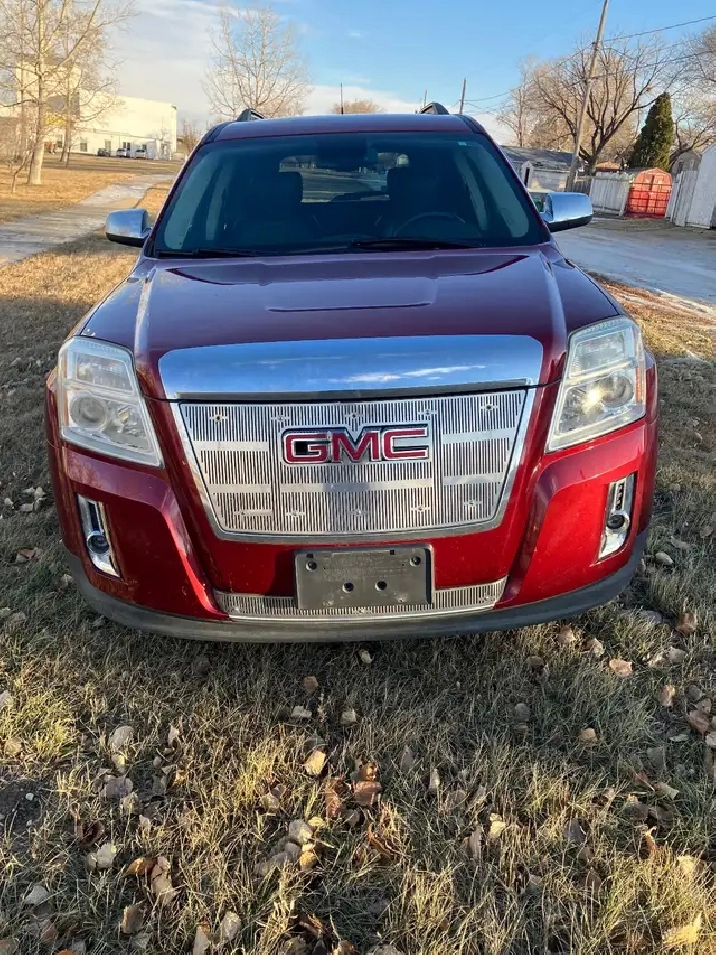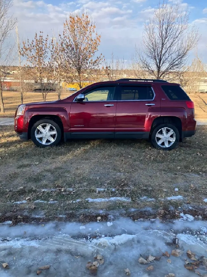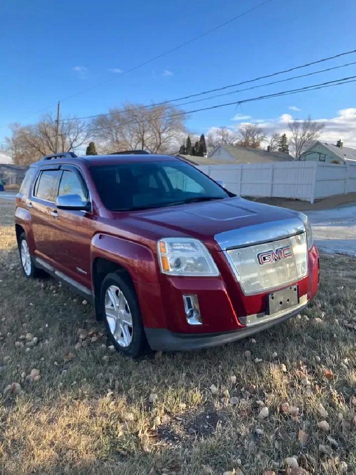 For sale: Pearl red 2012 GMC Terrain SLT 2.4L AWD automatic with only 98,000km. Equipped with heated power leather seats, air, cruise, power windows, power heated mirrors, keyless entry, traction control, factory command start, backup camera, and more. Runs and drives great and has good battery and brakes, tires like new, good glass, fresh wheel alignment. Asking $9,800. Call 306-313-1113 Moose Jaw.