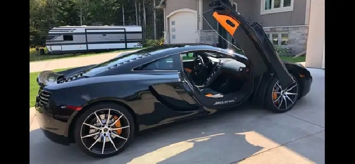 2012 McLaren MP4-12C Coupe in pristine condition with only 12,500 miles, two tone special edition with McLaren Orange and black leather interior, carbon fibre updates, light weight McLaren custom wheels with matching orange calippers, madarian sound system, ceramic coated, PPF front, OEM car cover, sport exhaust, OEM trickle charger, keyless entry, soft close doors, parking sensors, serviced every year a McLaren Toronto, 619 horse power, never tracked or abused. For more information please call only 1-807-621-6358