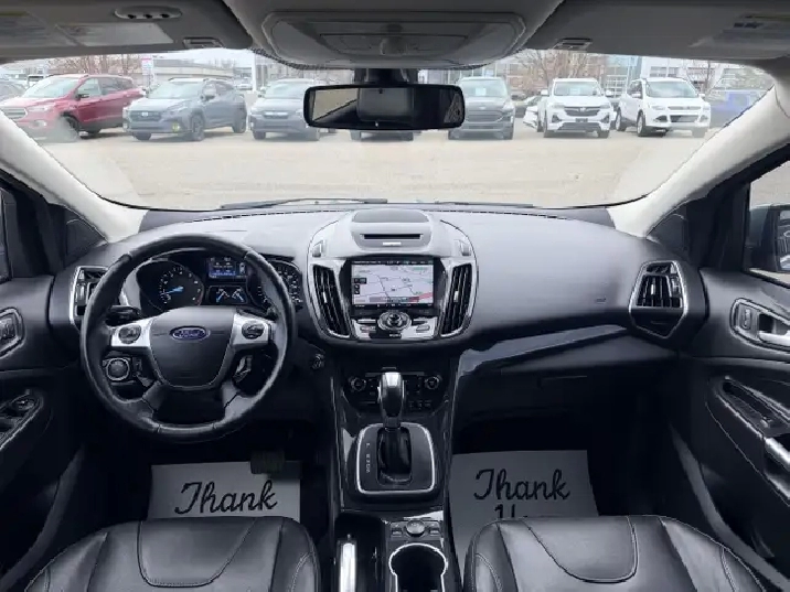 The vehicle you see before you is a 2013 Ford Escape Titanium. This vehicle is powered by a 2.0L turbocharged engine paired with an automatic transmission that features AWD and has 96,241km on the odometer.