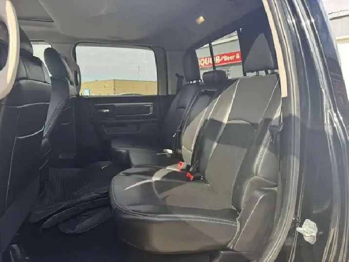 The Ram 1500 Sport has black leather heated and ventilated seats, cruise control, steering wheel controls, heated steering wheel, keyless entry, power windows, power mirrors, power locks, Bluetooth, USB & AUX, a backup camera, and much more! This Ram 1500 can seat 5 and comes with 2 keys!