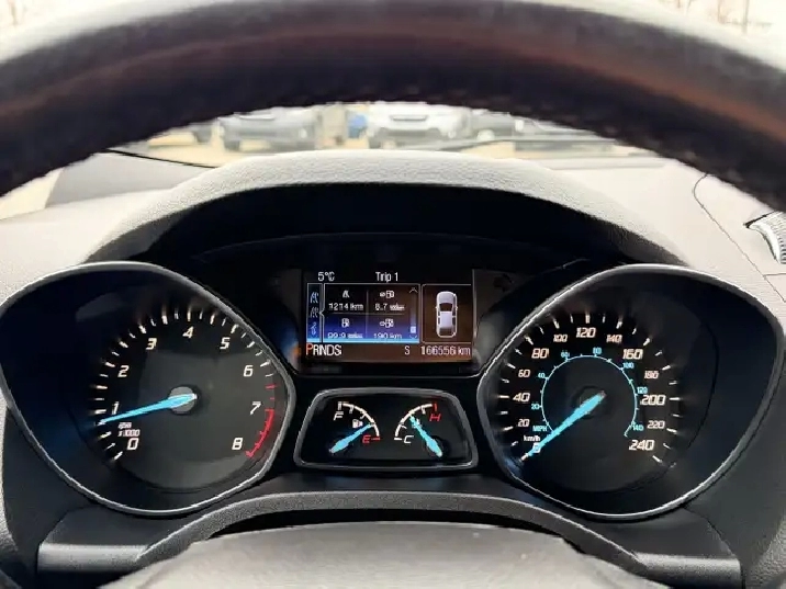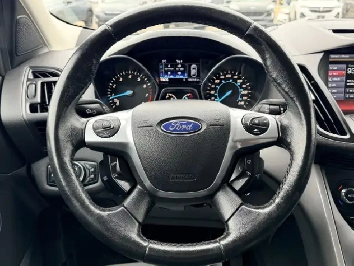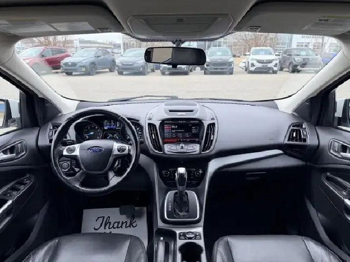 The vehicle you see before you is a 2014 Ford Escape Titanium. This vehicle is powered by a 1.6L turbocharged engine paired with an automatic transmission that features AWD and has 166,556km on the odometer.