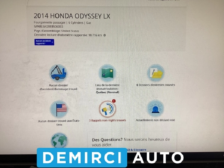 2014 HONDA ODYSSEY LX **JAMAIS ACCIDENTÉE**
