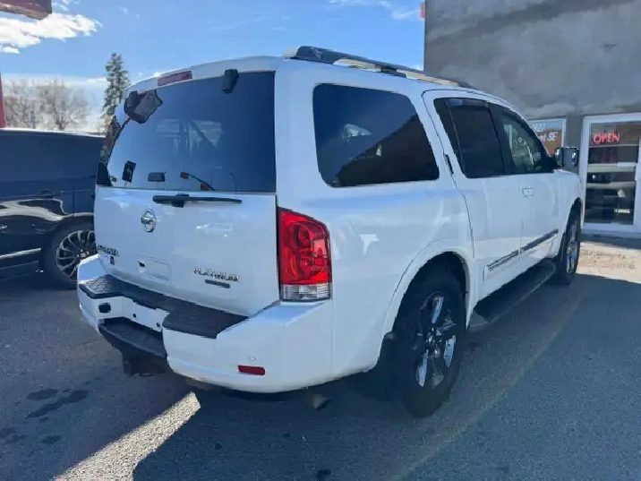 Selling 2014 Nissan Armada Platinum Edition with 206684 kms on it, which is 7 seater with lots of room and options, in a great mechanical condition. Automatic transmission, 5.6 litre V8 engine. Active status. Comes with recent mechanical fitness assessment, out of province inspection it is ready to be registered in AB and Carfax. Just detailed.