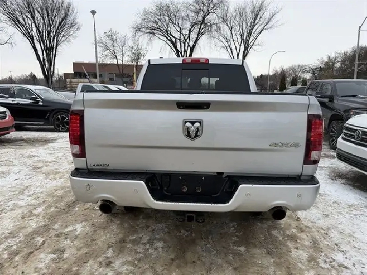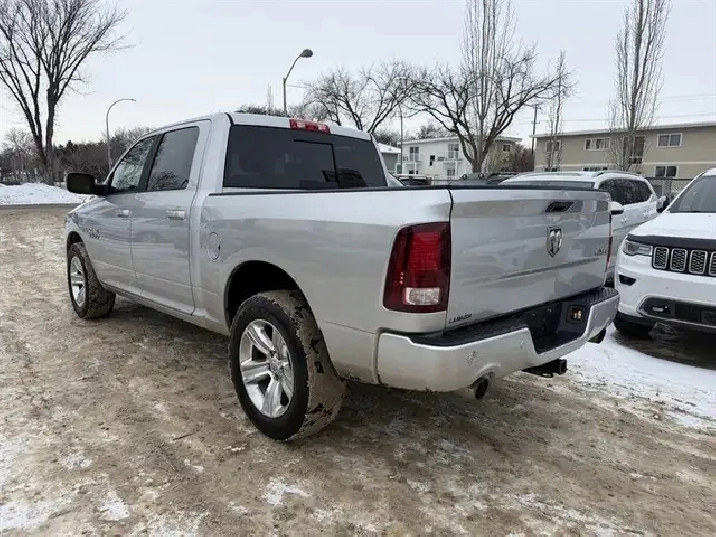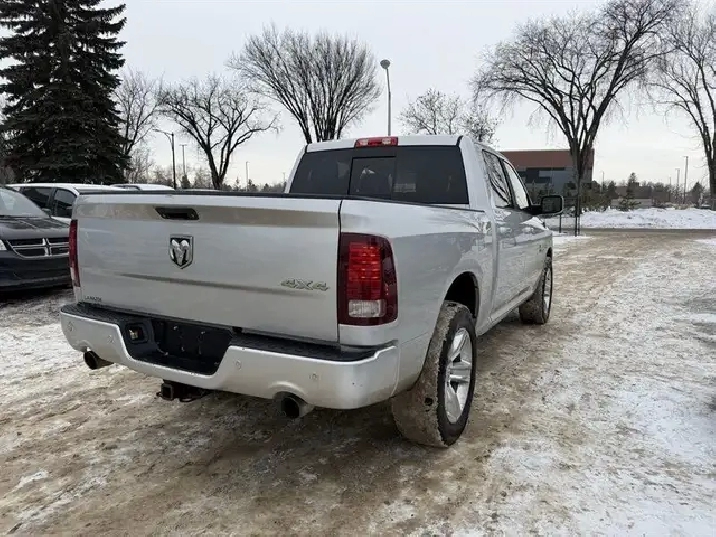 This 2014 RAM 1500 Sport is powered by the factory HEMI 5.7L V8, rated at 395 horsepower and 407 lb-ft of torque, mated to the TorqueFlite 8-speed automatic transmission. The powertrain includes HEMI cylinder-deactivation technology designed to improve highway fuel efficiency when cruising.