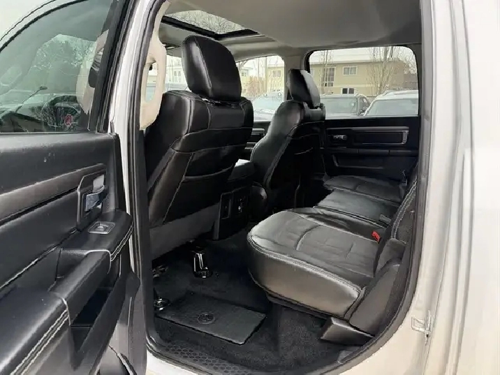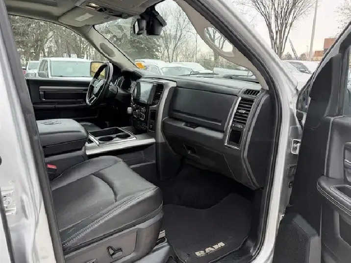 INSTALLED FEATURES: Front air conditioning: automatic climate control, Front air conditioning zones: dual, Airbag deactivation: occupant sensing passenger, Front airbags: dual, Side airbags: front, Side curtain airbags: front / rear, Antenna type: mast, Auxiliary audio input: Bluetooth / jack / memory card slot / USB, Radio: AM/FM / touch screen display / voice operated, Radio data system, Satellite radio: SiriusXM, Speed sensitive volume control, Total speakers: 6, ABS: 4-wheel, Braking assist, Electronic brakeforce distribution, Front brake type: ventilated disc, Rear brake type: ventilated disc, Armrests: rear center folding with storage, Floor mat material: carpet, Floor material: carpet, Floor mats: front / rear, Heated steering wheel, Shift knob trim: chrome, Steering wheel trim: leather, Adjustable pedals: power, Ambient lighting, Ashtray, Assist handle: front / rear, Center console: front console with storage, Cruise control, Cupholders: front / rear, Multi-function remote: keyless entry, One-touch windows: 2, Overhead console: front, Power outlet(s): 115V / 12V, Power steering, Power windows: lockout button, Reading lights: front, Rearview mirror: auto-dimming, Steering wheel: tilt, Steering wheel mounted controls: audio / cruise control / multi-function / phone / voice control, Storage: door pockets / in floor / under rear seats, Universal remote transmitter: garage door opener, Vanity mirrors: dual illuminating, Door handle color: body-color, Exhaust: dual tip, Exhaust tip color: chrome, Front bumper color: body-color, Grille color: body-color, Mirror color: body-color, Pickup bed light, Rear bumper color: body-color, Tailgate: removable, Infotainment: Uconnect, Infotainment screen size: 8.4 in., Clock, Compass, Customizable instrument cluster, Digital odometer, External temperature display, Fuel economy display: MPG / range, Gauge: tachometer, Instrument cluster screen size: 7 in., Multi-function display, Powertrain hour meter, Trip odometer, Warnings and reminders: low fuel level / low oil level / maintenance due, Daytime running lights: LED,