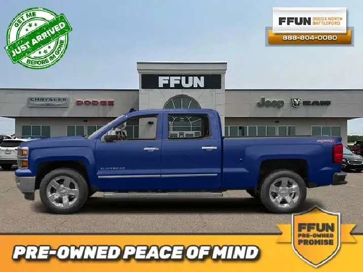 This 2015 Chevrolet Silverado is a full-size pickup that is as comfortable as it is versatile. After a complete overhaul in 2014, it gained more power, fuel-efficiency, and style. For 2015, it still retains its hard-working image as a truck that can get the job done while being a pleasure to drive. This Crew Cab 4X4 pickup has 282,764 km. It's Blue in colour. It has a 6 Speed Automatic transmission and is powered by a 355HP 5.3L 8 Cylinder Engine. This vehicle has been upgraded with the following features: Bluetooth, MyLink, OnStar, SiriusXM, Aluminum Wheels.
