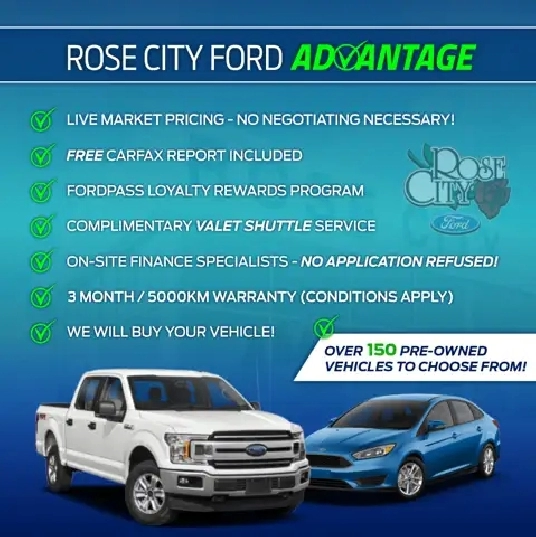 Stop in for a test drive today! No games. Just common sense utilizing Live Market Pricing technology to compare prices on vehicles all-over Ontario & beyond. The Result: Rose City Ford customers receive Real-Time Value Pricing on every vehicle we sell; ensuring the most competitive price in the market at any given time! We know Price, Condition and Selection Sells Cars, SUV's and Trucks at Rose City Fords Pre-Owned Centre! All Prices are Plus HST and Licensing Fees. Visit RoseCityFord.com