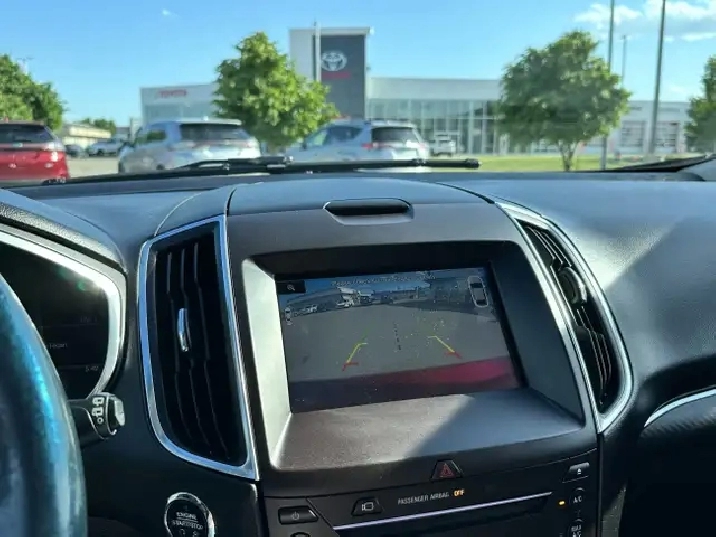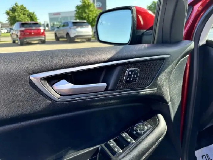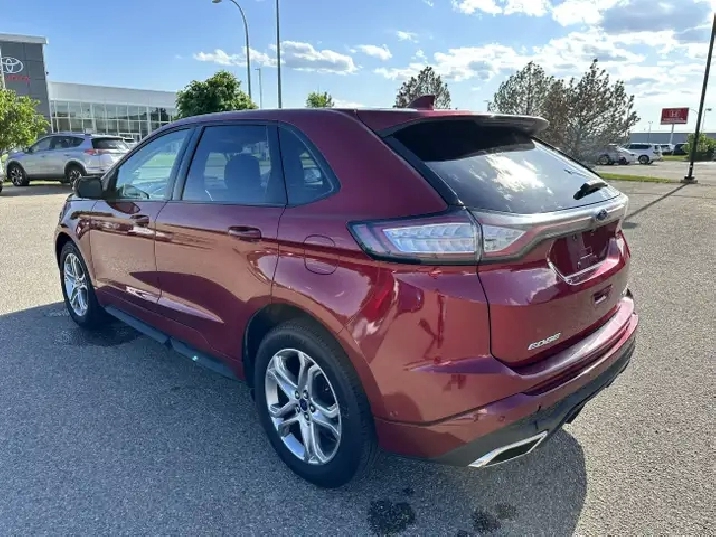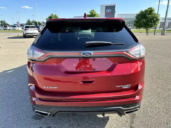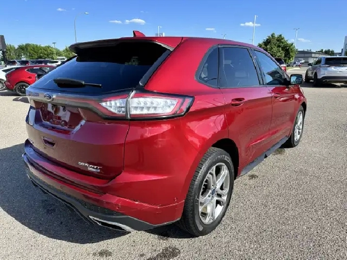 The vehicle you see before you is a 2015 Ford Edge Sport. This vehicle is powered by a 2.7L engine paired with an automatic transmission that features AWD and has 150,848km on the odometer.