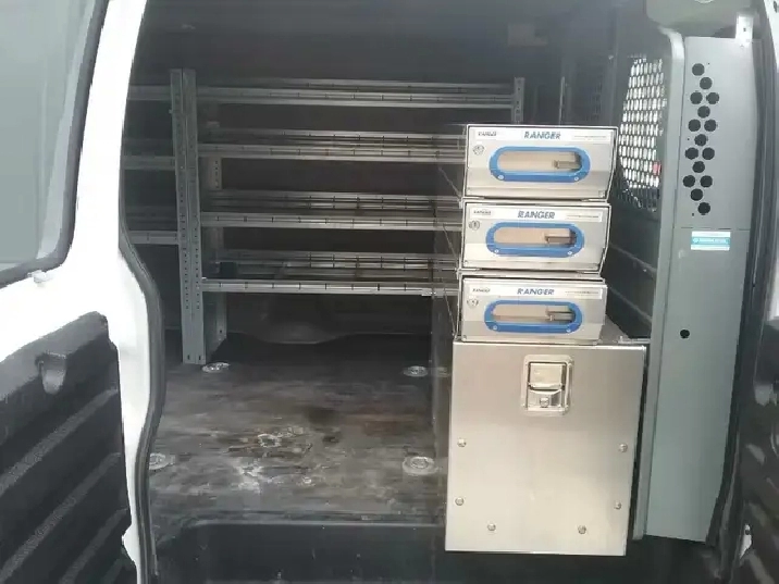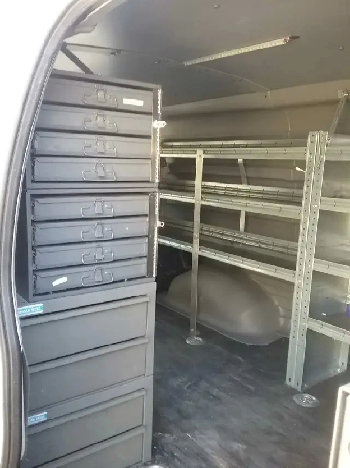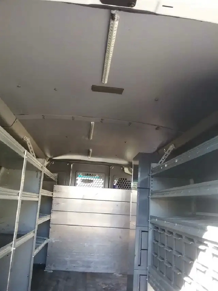 6 LITRE ENGINE, PWR WINDOWS LOCKS AND MIRRORS, AIR CONDITIONING AND TILT STEERING WHEEL, CENTRE CONSOLE CABINET, FULL SET OF METAL SHELVING WITH HARDWARE STORAGE CONTAINERS, REAR BULHEAD WITH DOOR, RANGER ALUMINIM STORAGE PULLOUT CABINET, ADRIAN STEEL SMALL HARWARE STORAGE CABINETS, DARK TINTED WINDOWS, FACTORY REAR HEATER, INSULATED REAR PLASTIC INTERIOR WALL AND CEILING COVERS WITH LED LIGHTING, FIRE EXTINGUISHER, DUAL DROP DOWN LADDER RACKS WITHALUMINUM CHECKER BOARD TUBING STORAGE, REAR DIRECTIONAL LIGHTING BAR WITH CONTROLLER, SAFETY LIGHTING, ROOF TOP BEACON,, LOW ENGINE HOURS .