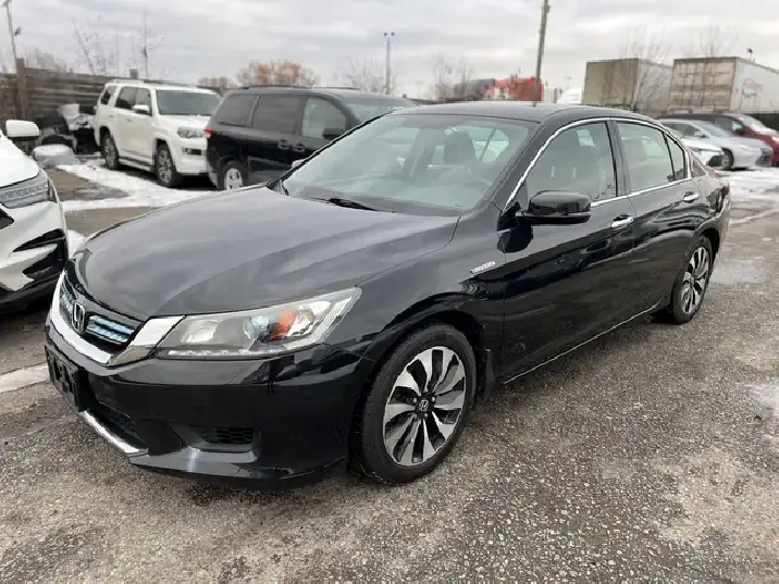 New Arrival. Black 2015 Honda Accord HYBRID. 1 OWNER! NO ACCIDENTS! ONLY 138,436 KMS! Local Ontario Vehicle. 2.0L 4 CYLINDER. Regularly Honda Serviced. CLEAN in and out. Runs Great. NO ISSUES. Loaded with Backup Camera, EV Drive Button, Honda LaneWatch Blind Spot Display, Proximity Key Entry, Push Button Start, Power Driver Seat, Power Trunk Release, Bluetooth, CD/USB/AUX, Dual Climate Control, 17-inch Alloy Wheels, and More!