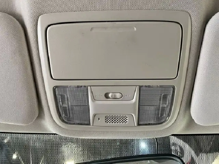- Console au plancher pleine grandeur avec compartiment de rangement couvert, miniconsole au pavillon avec compartiment de rangement, miroir panoramique et 2 prises de courant de 12 V c.c.