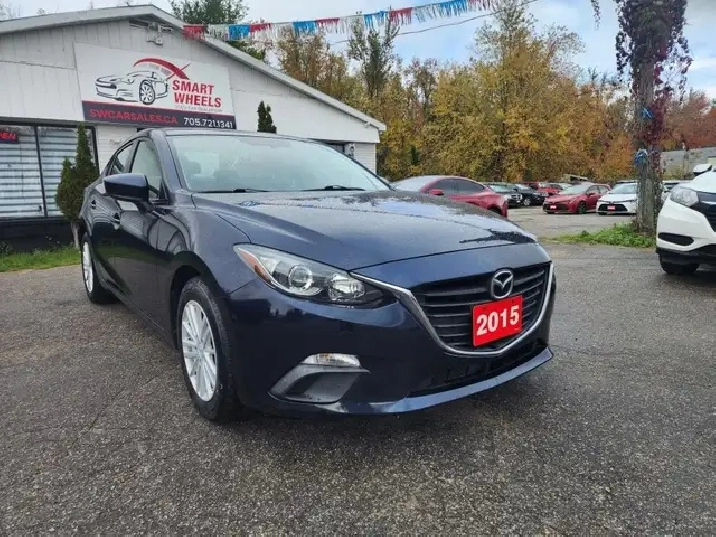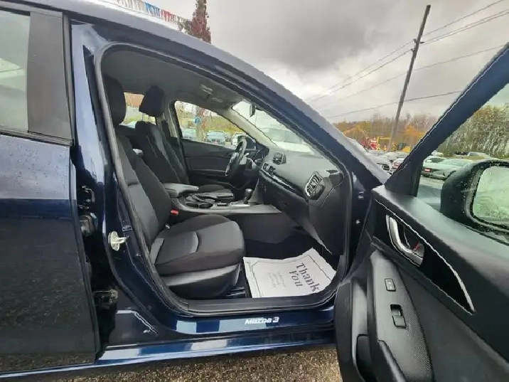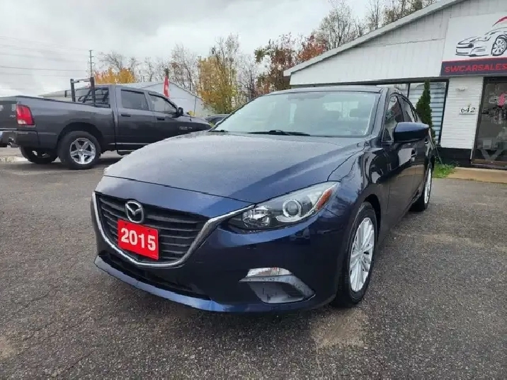 2015 MAZDA MAZDA3 featuring: Navigation, Cruise Control, Hand free phone, Low Tire Pressure Warning, Light Tinted Glass, Keyless Entry, Fixed Rear Window w/Defroster, Variable Intermittent Wipers , Air Conditioning, Electric Power-assist Speed-sensing steering, Tilt/Telescoping Steering Column, Alloy Wheels, Galvanized Steel/Aluminum Panels, Power Windows and more.