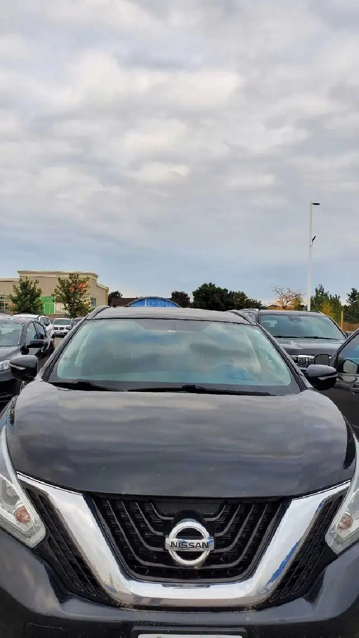 Selling 2015 Nissan Murano that is equipped with push button start, black seats, touch screen with Navigation system, trailer hitch, and extra set of tires on rims. It has a huge trunk and the back seats collapse flat if needed. The car is Female driven with 109100km and has been well maintained. However car smokes for about 5 mins when started in the morning.