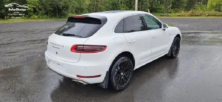 2015 PORSCHE MACAN TURBO, 6 cylinder 3.6L twin-turbo intercooler engine producing 400hp. AWD with 7-speed automatic transmission and paddle shifters. Air conditioning, Red heated leather seats, heated steering wheel, power locks, power mirrors, power windows, Dual front airbags, Side airbags, adaptive cruise control, Blind spot assist and lane-keeping alerts. Bluetooth connectivity, Navigation, backup camera and sunroof.