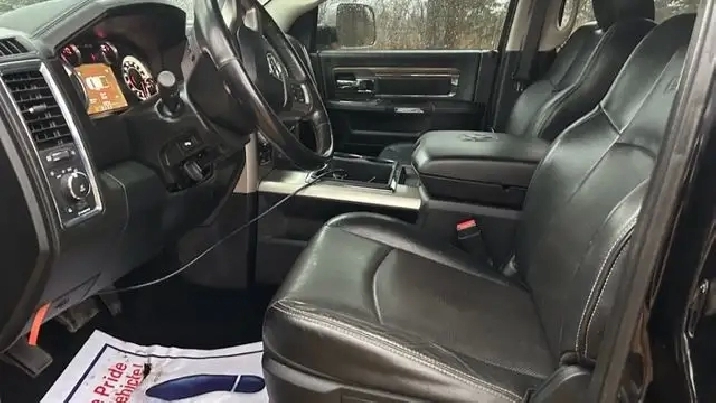 2015 RAM 1500 LARAMIE, 4X4, 4 DOORS, PICKUP TRUCK, CLEAN CARFAX, NO ACCIDENT HISTORY, GREAT SERVICE HISTORY, VERY WELL MAINTAINED, TOP OF THE LINE WITH NAVIGATION, BACKUP CAMERA, HEATED LEATHER SEAT, POWER WINDOWS, POWER LOCKS, AC, AUX, BLUETOOTH, AM, FM, AND MUCH MORE WITH ONLY 208,000 KM. FULLY CERTIFIED FOR ONLY $15,500 OR MAKE US A REASONABLE AS IS OFFER.
