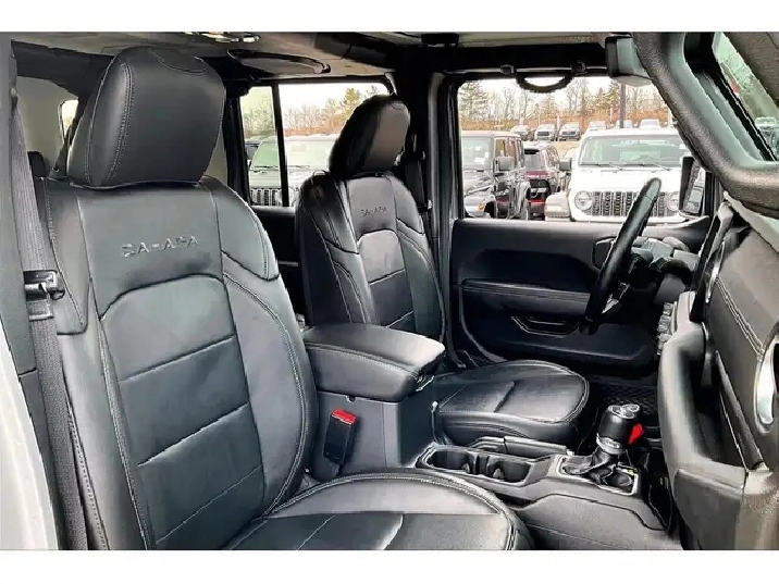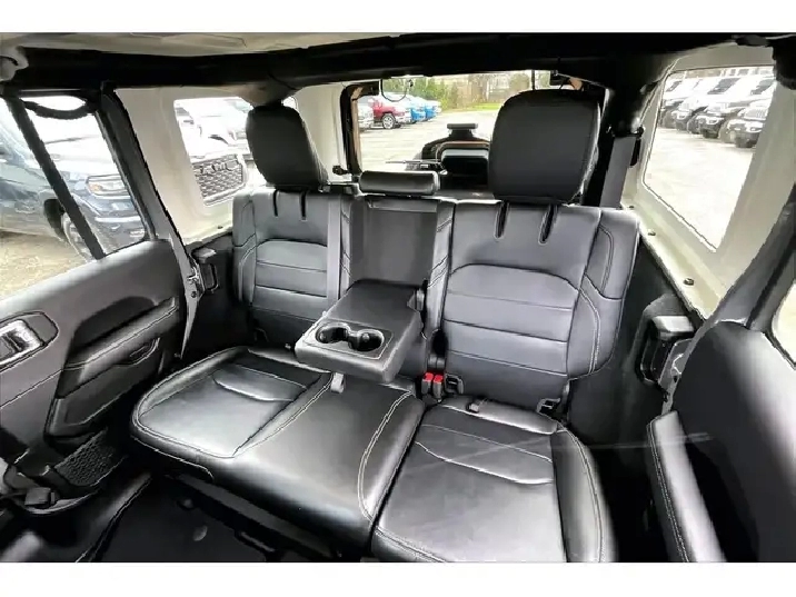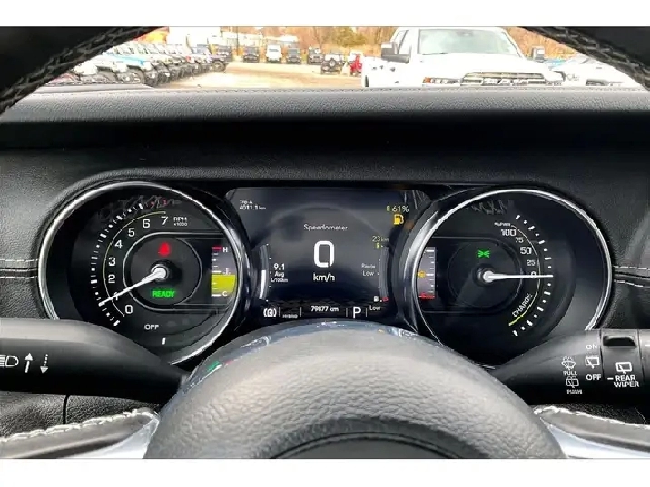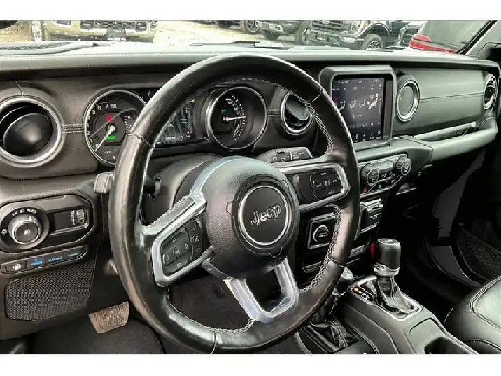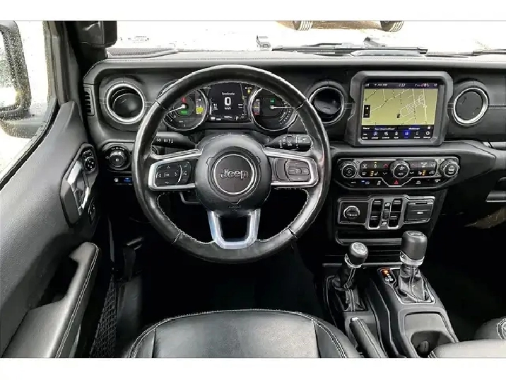 Charge into every day with comfort and quiet strength in this 2023 Jeep Wrangler Sahara 4xe, where heated leather bucket seats, a heated steering wheel, remote start, and a calm, well finished cabin make winter commutes and summer cruises easy. Uconnect on the 8.4 inch touchscreen with navigation pairs seamlessly with Apple CarPlay and Android Auto, Alpine premium audio keeps playlists crisp with the roof on or off, and the LED Lighting Group improves visibility after dark for added confidence. Outside, Sting Grey paint looks sharp against body colour fenders and a body colour three piece hard top, sturdy side steps simplify entry, and the 4xe plug in hybrid delivers instant electric torque for smooth, efficient city driving with gasoline range for long trips. The 4 to 1 Rock Trac full time 4WD system adds true trail control and year round traction. With One Owner Clean Carfax history, this Sahara 4xe blends luxury, technology, and authentic Jeep capability while saving at the pump.