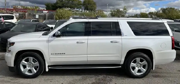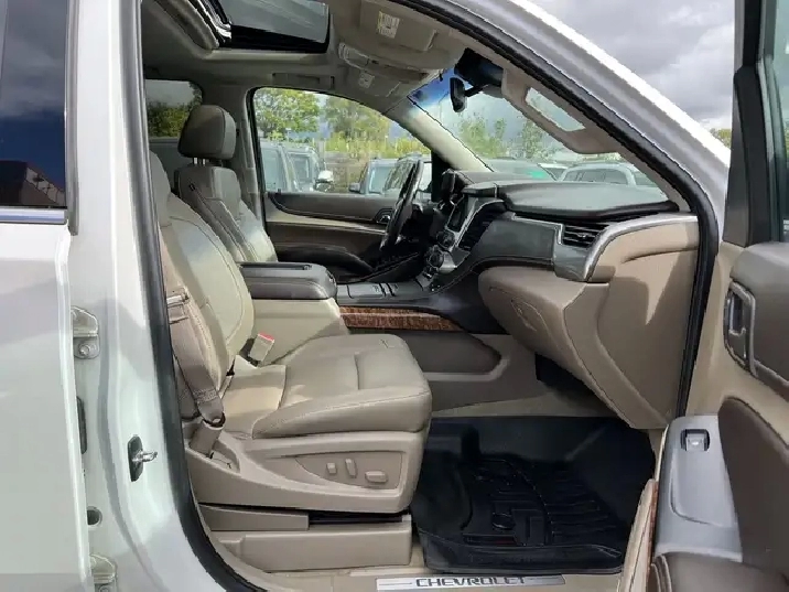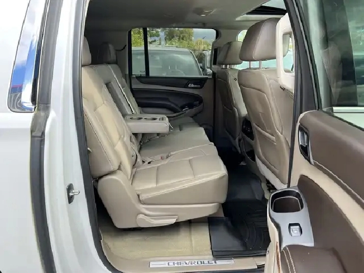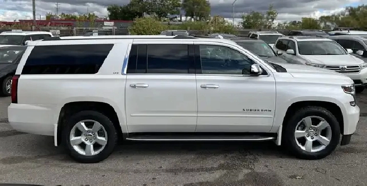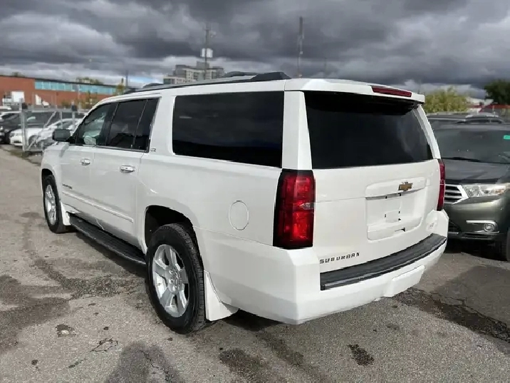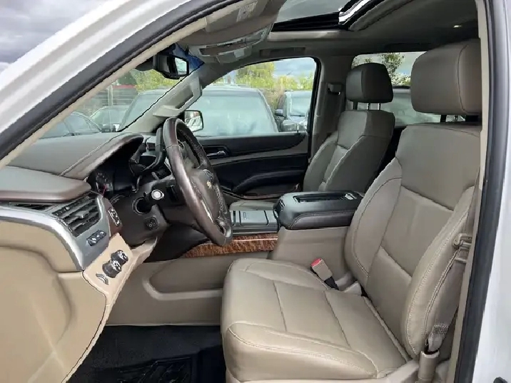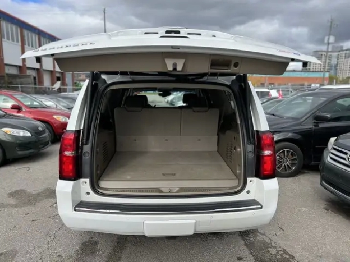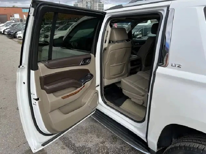 Just Arrived! Beautiful White on Beige Leather Interior 2016 CHEVROLET SUBURBAN LTZ WITH ONLY 86,125 KMS! NO ACCIDENTS! 1 OWNER! Local Ontario Vehicle. 5.3L V8. CLEAN. Runs Great. No issues. Regularly Serviced. 8 Seater. Fully Loaded with Navigation System, Backup Camera, Apple CarPlay, Heated and Ventilated Front Seats, Heated 2nd Seats with Power Release, Power Tilt Heated Steering Wheel, Push-Button Start, Remote Starter, Front and Rear Park Assist, Keyless Entry, Wireless Charger, Power Folding 3rd Row Seats, 20-inch Aluminum Wheels, Fog Lights, Bluetooth, Power Seats, BOSE Audio System, AUX/USB, Power Adjustable Pedals, Power Liftgate, Side Blind Zone Alert, Adaptive Cruise Control, Lane Change Alert, Rear Cross Traffic Alert, and Much More!