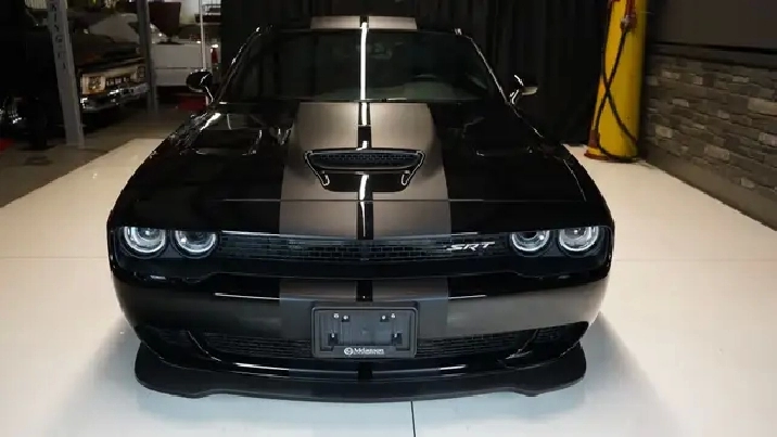 Melanson Motors is proud to offer this low kilometer, one owner 2016 Dodge Challenger SRT Hellcat! This beautiful car has been garage kept, fair weather driven and never abused. It has a clean CarFax report with no accidents. A sinister factory color combination in Pitch Black paint with Carbon stripes, over Black Laguna leather interior and Black SRT wheels. This particular Challenger is offered with both sets of keys and the factory literature. The car is factory stock and unmodified with power sunroof option and Harmon Kardon Audio system option. This Hellcat sounds great and drives perfectly down the road. The paint is nearly flawless and the interior shows no signs of wear. This low kilometer SRT Hellcat has been the pride and joy of its previous owner and is a top quality example.