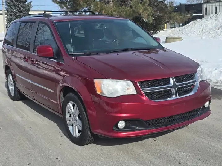 Very well maintained Grand Caravan Crew in a sharp red exterior with black leather interior. Well serviced as per Carfax and loaded with practical family features.