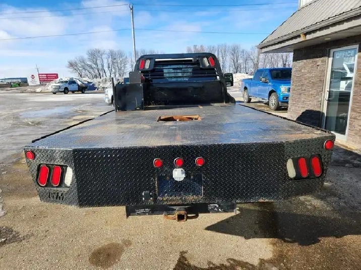 In great overall used condition and is ready to be put to work! Options include power windows/locks/mirrors, manual seats, A/C, cruise, AM/FM/MP3 radio, trailer brake controller, trailer hitch, and vinyl floor for easy clean up. Outfitted with a 11X8ft CM steel flatbed with storage box and integrated gooseneck ball. Equipped with a full set of like new Sailun S759 tires mounted on 19.5 steel rims with chrome covers. Lower rocks and door lips are in great shape, freshly detailed, runs and drives great, 19,500LB GVWR, located in Winkler. Please call or text 204-362-5953 for inquiries.
