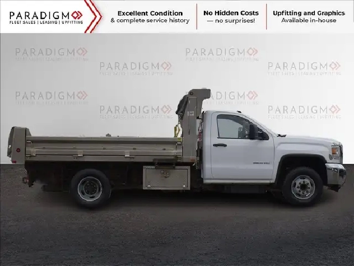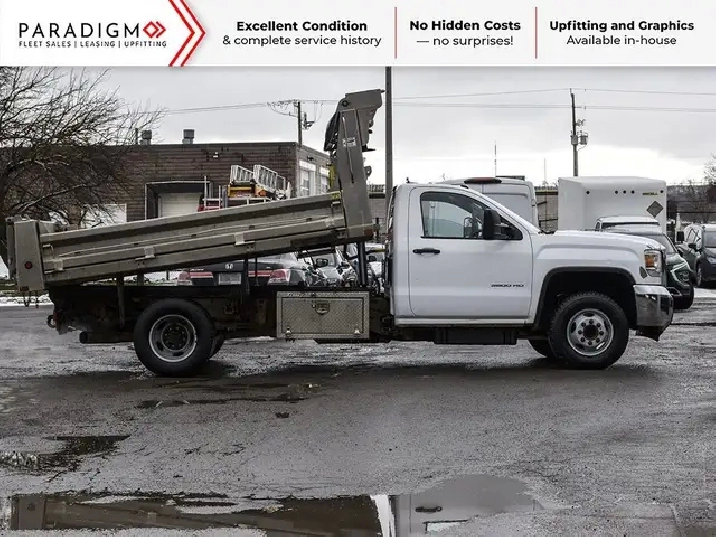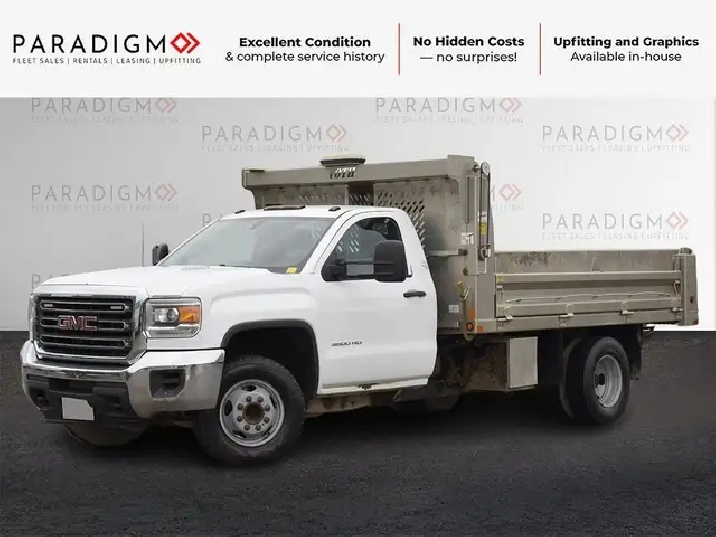The 2016 GMC Sierra 3500 dump truck is a robust and capable work-ready vehicle designed to handle demanding tasks. As a heavy-duty truck, it offers substantial payload and towing capacities, making it well-suited for construction, landscaping, and other commercial applications. The inclusion of a dump body enhances its utility, allowing for the easy transport and unloading of materials such as gravel, soil, and debris. Being work-ready typically implies that the truck is equipped with necessary features and configurations right from the dealership, potentially including durable interior materials, essential towing equipment, and a powertrain engineered for consistent performance under heavy loads. This model year of the Sierra 3500 is known for its strong engine options and durable build, contributing to its reputation as a reliable workhorse.