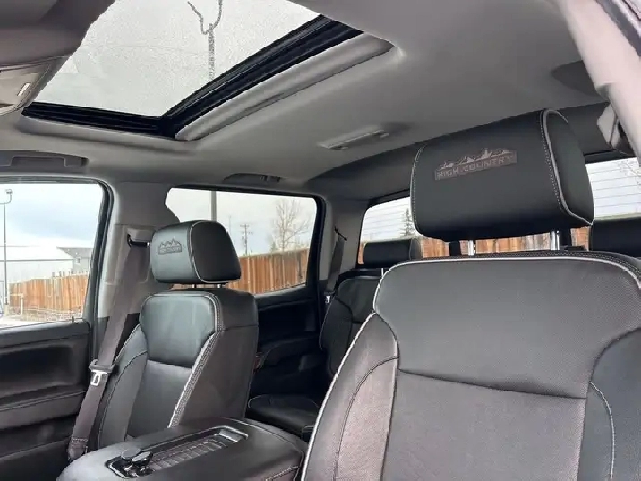 - High Country includes High Country brushed metal sill plate, (AN3) front full-feature leather-appointed bucket seats, (KQV) heated and vented seats, (K4C) Wireless Charging, (B58) colour-keyed carpeted floor mats, (D07) centre floor console, (UQA) Bose sound system, (NZJ) 20" chrome wheels, (IO6) MyLink 8" Diagonal Colour Touch audio system with Navigation, (QSS) P275/55R20 all-season, blackwall tires, (UD5) Front and Rear Park Assist, (VB5) body-colour front bumper, (VT5) body-colour rear bumper, unique chrome grille, (V76) Black recovery hooks, (VQZ) polished exhaust tip, LPO, (CTD) cargo tie downs, dealer-installed (4), (BVQ) chrome assist steps, (Y86) Enhanced Driver Alert Package (which includes (UEU) Forward Collision Alert, (UHX) Lane Keep Assist, (TQ5) High Beam assist, (UHY) Low Speed Forward Automatic Braking and safety alert seat, (UVD) heated steering wheel, (JF4) Power Adjustable Pedals and (JL1) trailer brake controller