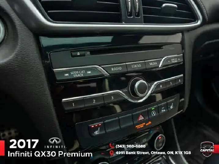 This certified 2017 Infiniti QX30 has passed a full safety inspection and is sold with warranty coverage.