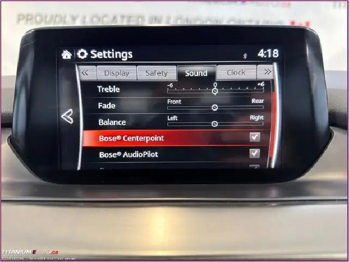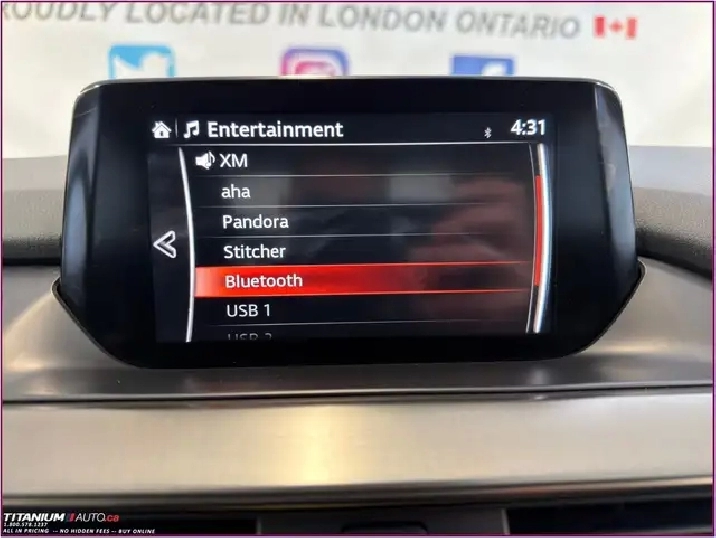 - Radio: AM/FM/HD Single-CD Stereo -inc: MP3 capability, BOSE premium audio system w/11 speakers w/Centerpoint 2, AudioPilot 2 and SurroundStage, Bluetooth w/Audio Profile, 2 USB ports, auxiliary audio input, 7" colour touchscreen display w/Mazda Connect, Aha and Stitcher internet radio functionality, SMS text message functionality, voice activated navigation system w/touch screen, HMI Commander and steering wheel mounted audio and Bluetooth controls