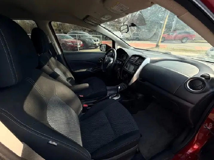 Sporty Yet Royal Red Nissan Versa Note On Black Interior. Equipped with 1.6L 4 Cylinder Engine - Amazing Fuel Economy Hatchback!