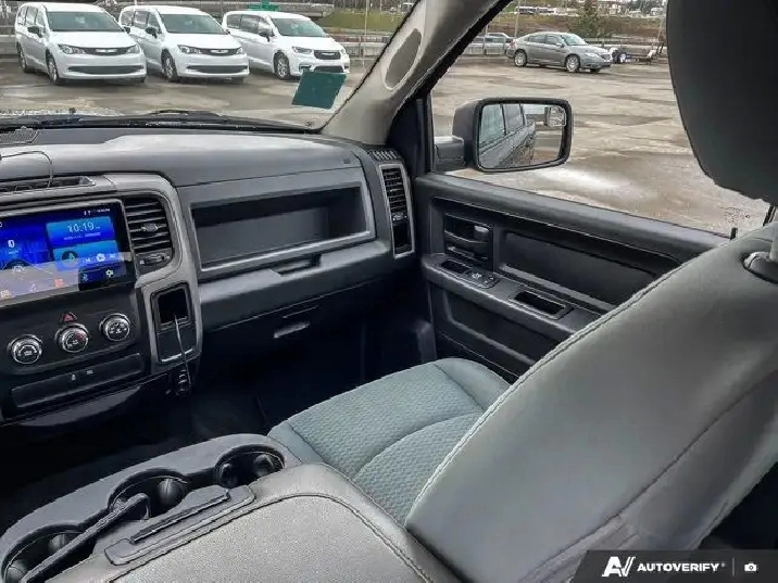 - 3.55 REAR AXLE RATIO,DIESEL GREY/BLACK CLOTH FRONT 40/20/40 BENCH SEAT,SIRIUSXM SATELLITE RADIO -inc: 1-Year SiriusXM Subscription For SiriusXM Info Call 888-539-7474,RADIO: UCONNECT 3 W/5 DISPLAY -inc: 5 Touchscreen SiriusXM Satellite Radio 1-Year SiriusXM Subscription For SiriusXM Info Call 888-539-7474 Remote USB Port - Charge Only Hands-Free Comm w/Bluetooth Overhead Console GPS Antenna Input Temperature & Compass Gauge,QUICK ORDER PACKAGE 25J EXPRESS -inc: Engine: 5.7L HEMI VVT V8 w/FuelSaver MDS Transmission: 6-Speed Automatic Centre Hub Body Colour Front Fascia Body Colour Grille Bright Dual Rear Exhaust Tips Body Colour Rear Bumper w/Step Pads Front & Rear Floor Mats Ram 1500 Express Group,BLACK RAM 1500 EXPRESS GROUP -inc: Radio: Uconnect 3 w/5 Display 5 Touchscreen SiriusXM Satellite Radio 1-Year SiriusXM Subscription For SiriusXM Info Call 888-539-7474 Remote USB Port - Charge Only Hands-Free Comm w/Bluetooth Overhead Console GPS Antenna Input Temperature & Compass Gauge Black Ram's Head Tailgate Badge Black 5.7L Hemi Badge Full-Size Temporary Use Spare Tire Power Heated Manual Folding Mirrors Black Headlamp Bezels Black Ram 1500 Badge Semi-Gloss Black Hub Tires: P275/60R20 BSW All-Season (DISC) Popular Equipment Group Front & Rear Floor Mats Remote Keyless Entry Power Windows w/Front 1-Touch Down Delete Hemi Badge Black Painted Honeycomb Grille Wheels: 20 x 8 Semi-Gloss Black Aluminum (DISC),REMOTE KEYLESS ENTRY,TRANSMISSION: 6-SPEED AUTOMATIC,ENGINE: 5.7L HEMI VVT V8 W/FUELSAVER MDS (STD),CLASS IV HITCH RECEIVER,POPULAR EQUIPMENT GROUP -inc: Front & Rear Floor Mats Remote Keyless Entry,WHEELS: 20 X 8 SEMI-GLOSS BLACK ALUMINUM,TIRES: P275/60R20 BSW ALL-SEASON,BRILLIANT BLACK CRYSTAL PEARL,Variable Speed Intermittent Wipers,Power Door Locks,Intermittent Wipers,Fog Lamps,Heated Mirrors,Automatic Headlights,Power Mirror(s),Daytime Running Lights,Four Wheel Drive,Privacy Glass,Split Bench Seat,Rear Bench Seat,Aluminum Wheels,Power Steering,Passenger Air Bag Sensor,MP3 Capability,Power Door Locks,Tire Pressure Monitor,Conventional Spare Tire,Immobilizer,Vinyl Seats,Power Windows,Auxiliary Audio Input,ABS,Traction Control,Rear Head Air Bag,Stability Control,Brake Assist,Cruise Control,Power Windows,Adjustable Steering Wheel,4-Wheel Disc Brakes,MP3 Capability,Driver Air Bag,Child Safety Locks,A/C,Passenger Air Bag,Front Head Air Bag,Split Bench Seat,Front Side Air Bag,Traction Control