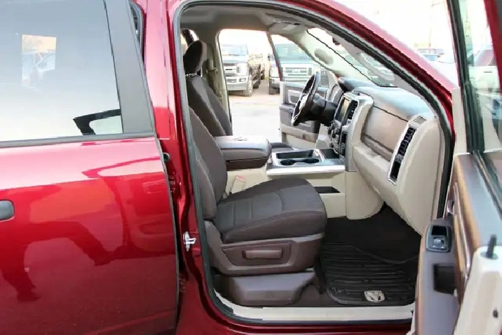 2017 RAM 1500 Outdoorsman Quad Cab 4x4 5.7L Hemi with 205,662 original kilometers. Beautiful Maroon on Brown/Beige interior. Carfax Clean, Ontario vehicle. Equipped with Power drivers seat with lumbar, steering wheel controls, back-up camera, park assist sensors, heated seats, heated steering wheel, factory trailer brake, Fog lights, Extended Side Steps, Spray in bedliner with tri-fold tunnel cover. Interior in excellent condition and air conditioning blowing cold. Runs and drives very smooth, well serviced truck. Certified with our 2 year power train warranty included.