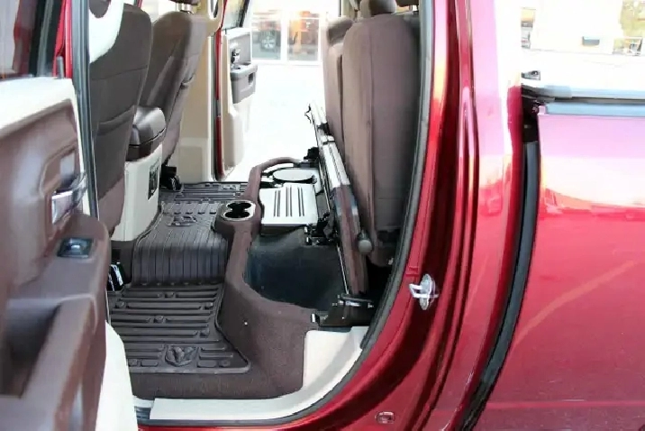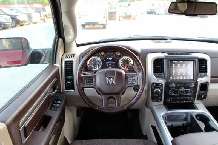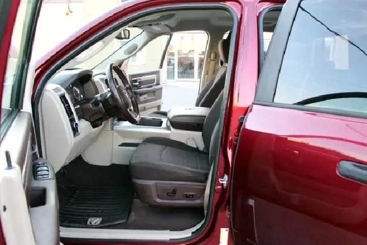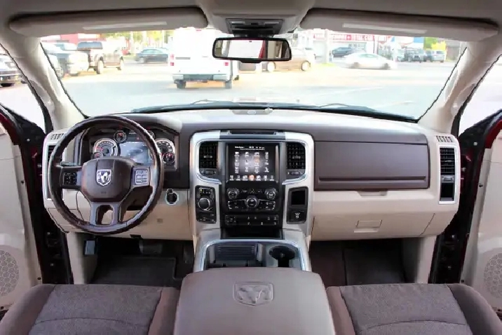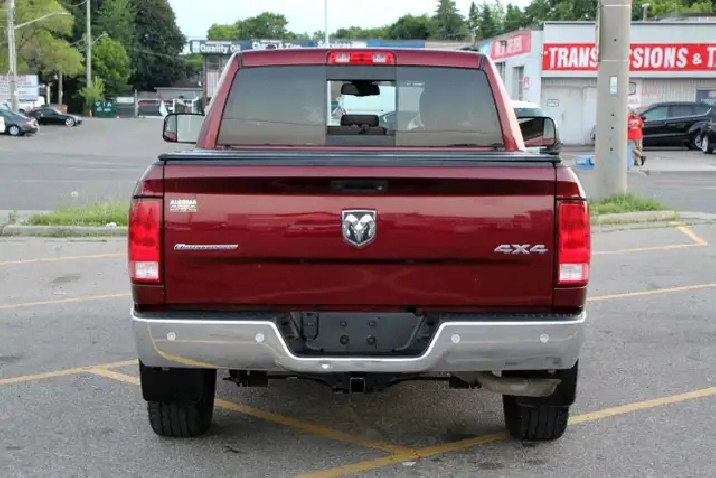 2017 RAM 1500 Outdoorsman Quad Cab 4x4 5.7L Hemi with 205,662 original kilometers. Beautiful Maroon on Brown/Beige interior. Carfax Clean, Ontario vehicle. Equipped with Power drivers seat with lumbar, steering wheel controls, back-up camera, park assist sensors, heated seats, heated steering wheel, factory trailer brake, Fog lights, Extended Side Steps, Spray in bedliner with tri-fold tunnel cover. Interior in excellent condition and air conditioning blowing cold. Runs and drives very smooth, well serviced truck. Certified with our 2 year power train warranty included.