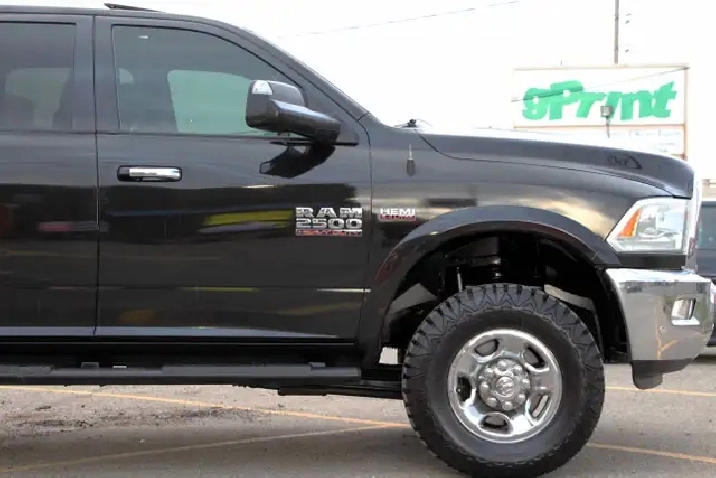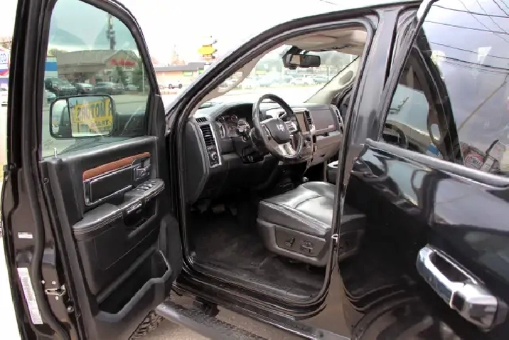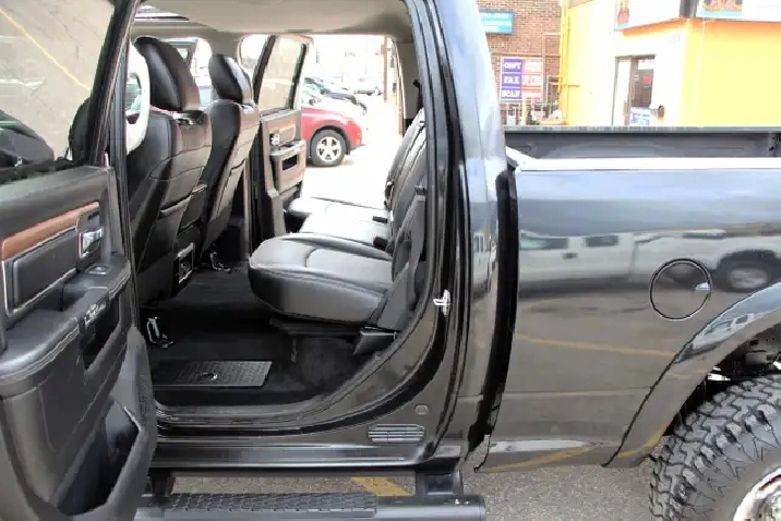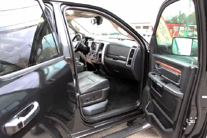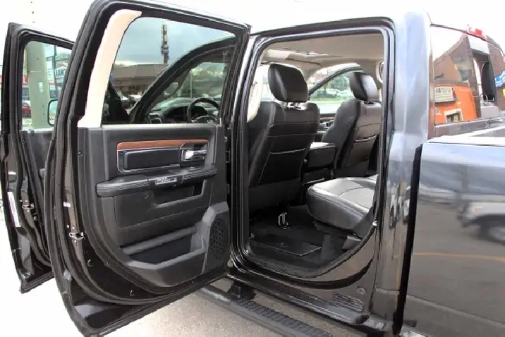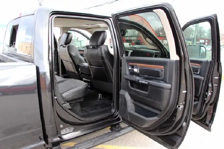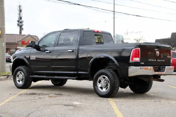 2017 RAM 2500HD Laramie Power Wagon Crew Cab 6.4L Hemi 4x4 with 232,365 kilometers. Black on Black with wooden trim.